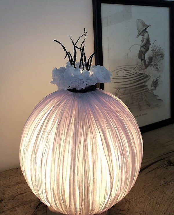 Lueur de soie est une lampe en forme de globe et d'aspect plissé, réalisée en papier de soie blanc. Modelée pour être rigide et légère. Le plissé du papier de soie donne un effet de matière grâcieux et une lumière très belle, douce non agressive et délicate. Ce globe aux allures organiques et végétales se pose tout simplement sur son socle en porcelaine (vidéo à suivre).